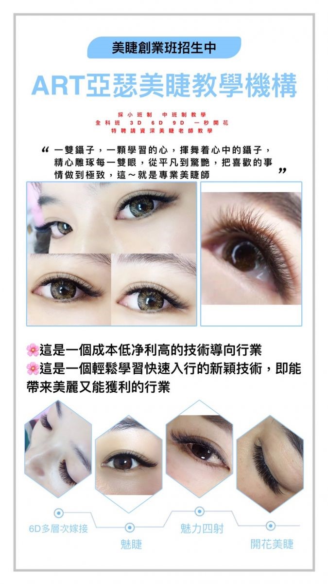 美睫嫁接創業是2022年最夯的行業,是快速學習,創業排行榜首,票選獲利第一名,易學,易懂,容易複製,培訓學習1-4天馬上創業,成本低風險少,市場需求大,睫毛會一直成長,並會掉落,創造循環式獲利的消費模式,消費價格約1000-3000小額成本,只要經營50-100忠誠消費者,就可月收50000-100000,創造無限商機,21世紀要懂得培訓自己的第二項專長,成功者在創造機會,失敗者只在等待機會, 不要錯失任何一個成功機會! 成功很簡單,困難......困在家裡都很難出路....要走出來才會有路....只要您願意出來學習,成就成功就在妳身上。